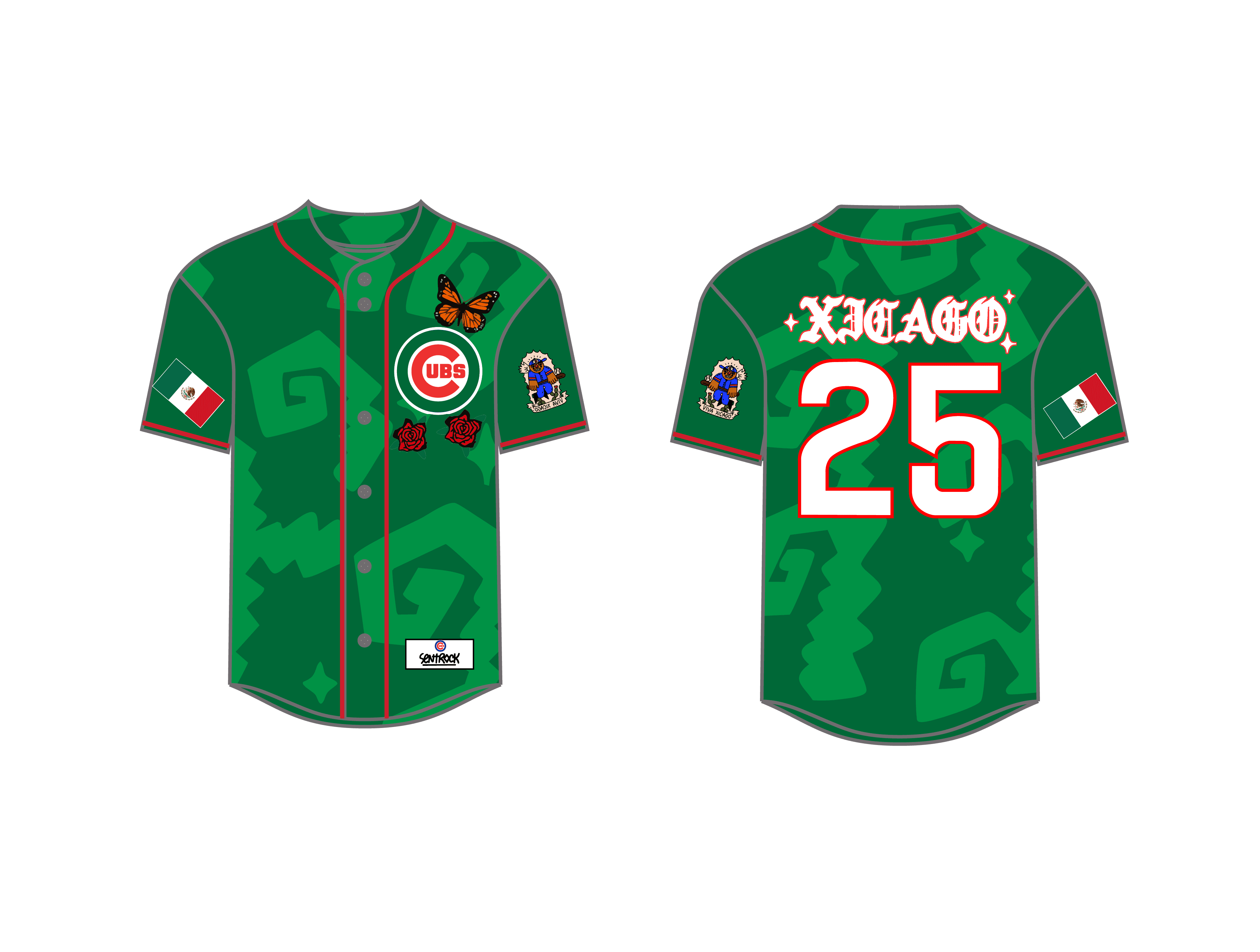 To celebrate Mexican Heritage Night at Wrigley Field, I designed a custom jersey that blends the rich traditions of Mexican culture with the iconic identity of the Chicago Cubs. In collaboration with Chicago-based artist Sentrock, this jersey pays homage to heritage, community, and creativity. My role was to bring that spirit to life through a jersey that resonates with both baseball fans and the Latin community. This collaboration was about more than just aesthetics—it was about identity, storytelling, and cultural pride.